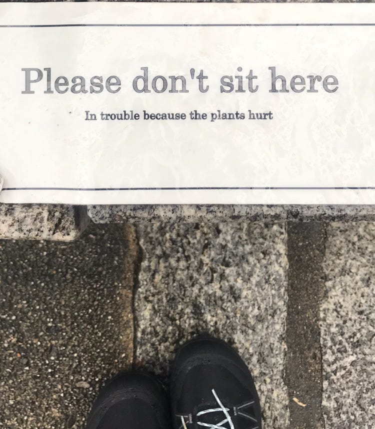 Sitting down is a formalized activity that can only occur in places designated by the government